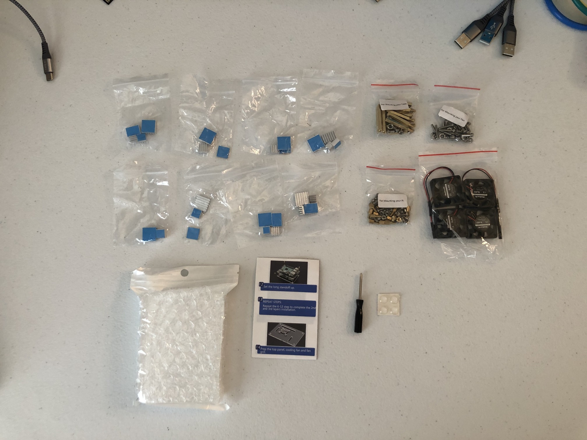 This step could be done at any time, but I found it easier just to get it over with right away. Assembly was fairly simple, there’s only a few instructions to follow, most of which are repetition. While probably not effective case, this kit will also allow you to build a 2 or 3 node cluster, just omit any extra layers/parts.
